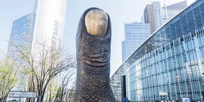 Le modèle original, reproduction du pouce de l’artiste réalisé en 1965 à l’occasion d’une exposition sur le thème de la main, mesurait « seulement » 40 cm et a été adjugé 1,2 million d’euros lors d’une vente prestige à l’occasion de la Foire Internationale d’Art Contemporain (FIAC).