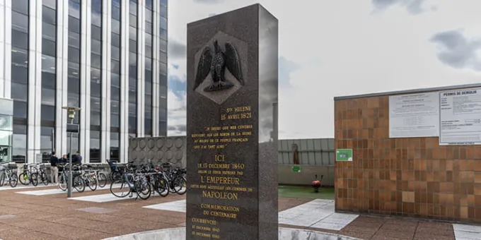 Le site de La Défense garde désormais la mémoire de Napoléon. C’est là, en effet, place du Port, que furent solennellement débarquées les cendres de l’Empereur, le 15 décembre 1840. Une stèle commémorative marque l’emplacement où elles ont reposé avant leur transfert aux Invalides.
