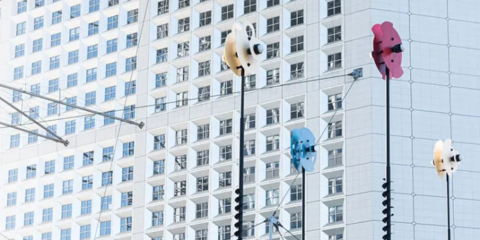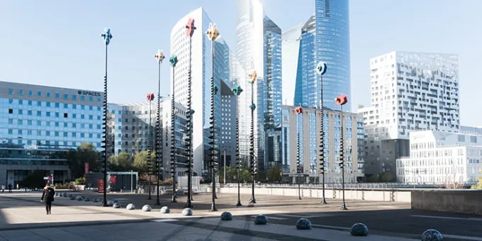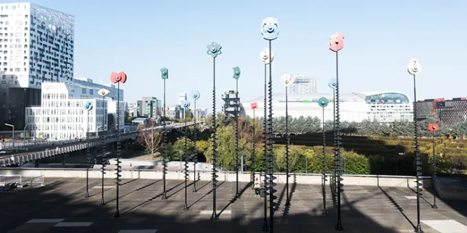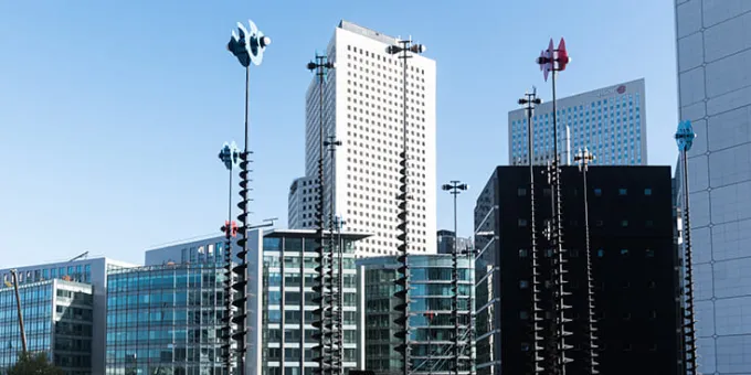 Placés à l’arrière de la Grande Arche, ils marquent l’extrémité de l’axe qui traverse La Défense, répondant à ceux du Bassin de Takis pour présenter une expérience sensorielle, spectacle changeant, de jour comme de nuit. Ainsi, les couleurs vibrent différemment, offrant aux promeneurs une forêt de lumières pour se repérer.