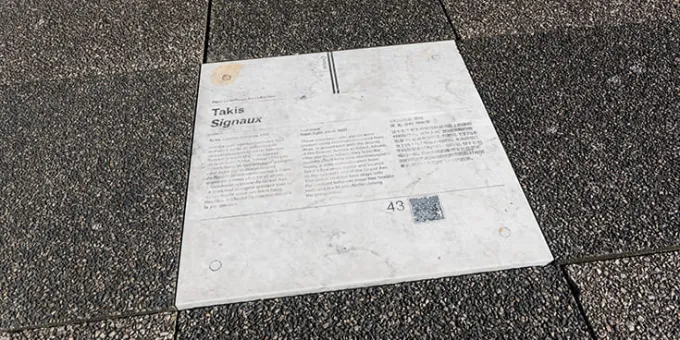 Pour répondre à un souhait exprimé par l’architecte de la Grande Arche, J.O von Spreckelsen, Takis a conçu 17 signaux lumineux. La hauteur de ces éléments lumineux, installés en 1991, varie de 6,50 mètres à 11,50 mètres.