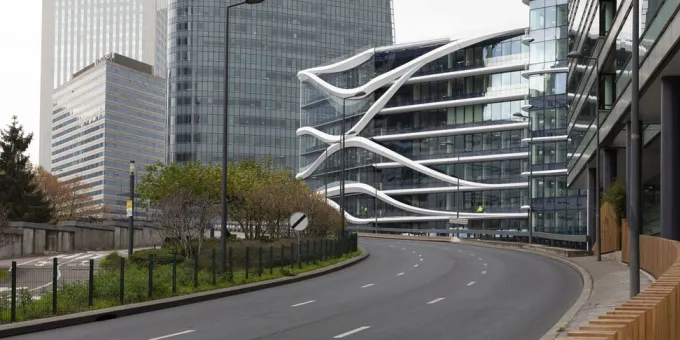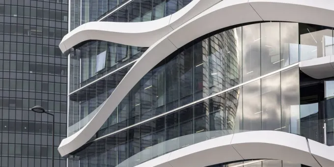 Véritable prouesse technique, Latitude est la restructuration d’un ancien immeuble des années 70 (Berkeley Building) et d’un parking qui se trouvait en-dessous du boulevard Patrick-Devedjian. Latitude a été réalisé par Générale Continentale Investissements (GCI) en partenariat avec Benson Elliot Capital Management (BECM). Latitude a été pensé pour offrir un environnement de travail inclusif par des considérations spatio-architecturales d'installations et de services ultramodernes. Avec un design audacieux signé Studios Architecture, à deux pas du CNIT et sur les rives du boulevard Patrick-Devedjian, l’édifice bénéficie d'une grande visibilité. Latitude se distingue par des éléments architecturaux spécifiques avec une écriture toute en courbes et une vague de rubans qui enveloppe le bâtiment.