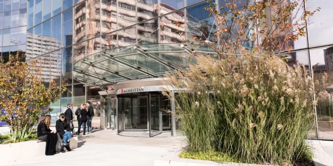 La tour Manhattan est le résultat d'un processus de commande amené par Henry Bernard. C'est en effet lui qui conseille la Cogédim pour la réalisation de deux tours qui deviendront une seule sous l'expertise de Michel Herbet et Michel Proux. L'édifice exprime la gémellité originelle mais les deux volumes sont reliés par des parois courbes tranchant avec l'orthogonalité dominante des tours du quartier.
