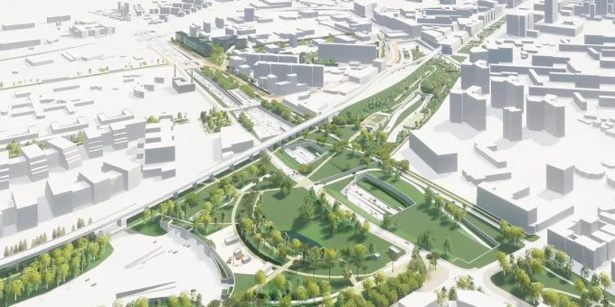 With the recent removal of highway ramps, the momentum generated at the Échangeur site offers significant opportunities for an iconic project that is both inhabited and oriented toward the city and nature.