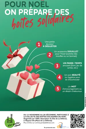 Want to bring a little cheer to those in need? The Association du site de La Défense (AsD) is once again organizing its Christmas Boxes for Solidarity collection! Drop yours off at the Paris La Défense Information Center between November 13 and December 28, 2025.
