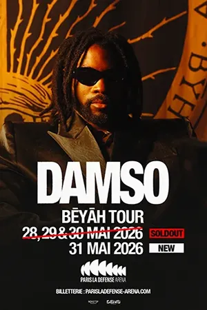 Damso concert on May 28, 29, 30, and 31 2026, at Paris La Défense Arena