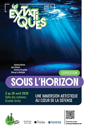 Want to explore the depths of the ocean without scuba gear or a wetsuit? Sous l’Horizon, the first exhibition of the 2026 season at Les Extatiques, takes you on a unique sensory adventure under La Grande Arche from April 3 to 26, 2026!