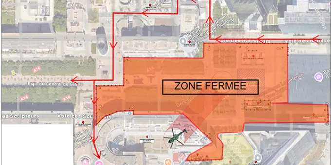 To ensure that this operation is carried out in the safest possible conditions for everyone, part of the esplanade will be closed to public traffic from 6 a.m. to 5 p.m. For the same reasons, access no. 1 Courbevoie-Iris of the Esplanade metro station will be inaccessible on Saturday, October 18 until the end of the operation. Detours will be indicated on site and traffic marshals will be on hand to assist you if necessary.