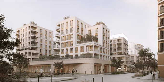 On a 7,000 m2 site near Courbevoie and La Garenne-Colombes, Quartus and Emerige will be building a new mixed-use development called Îlot Ciel. The six buildings, of different heights, will accommodate 176 homes (open-access, controlled-access, intermediate rental, social rental, etc.). This difference in height will encourage sunlight, open up views and ensure the continuity of shared outdoor spaces. Each flat will have its own private outdoor space, access to roof terraces and bicycle parking.