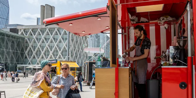 Tous les matins, commencez la journée avec un café italien issu de grains torréfiés au pied du Mont Blanc, dans la Vallée d’Aoste. Servi dans un gobelet recyclable ou une tasse comestible, vous pourrez l’agrémenter d’une petite douceur : panettone, tuiles tegole, ou encore biscuits melighe.