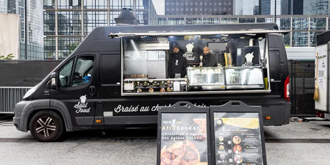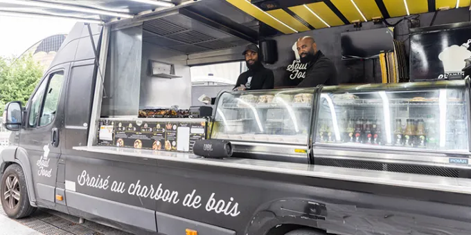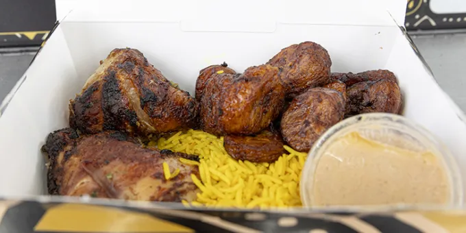 De la cuisine afro braisée au charbon de bois (et sans gluten) : poulet braisé, attiéké (semoule de manioc), duo de patates douces sauce coco & vanille, sans oublier les traditionnelles bananes plantains. Une belle histoire de famille de cuisiniers et pâtissiers aux origines d’Afrique et des Antilles.