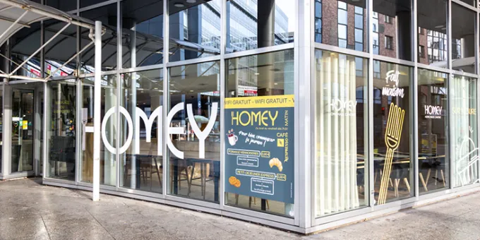 Chez Homey, venez manger 100% fait maison, 100% sur mesure, 100% fait par vous. En plein cœur de La Défense et au pied de la station de RER Nanterre-Préfecture, ce restaurant propose de composer vous-même votre repas, avec des produits frais et une cuisine maison. Sur place ou à emporter, à vous de choisir ! Trois pôles sont disponibles pour composer votre repas : pita, salade ou plat chaud. Le tout dans une ambiance de self moderne-chic, au design soigné.