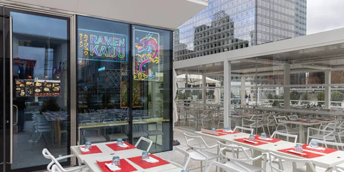 Niché au cœur de Table Square au bord de la fontaine Agam et équipé d’une belle terrasse couverte le long de l’esplanade de La Défense, ce restaurant va à coup sûr ravir les amateurs de ramens, qu’ils soient au porc, au poulet ou aux crevettes ! Les moins fans ne seront pas en reste avec les donburris, riz sautés ou encore les yakisobas. Le restaurant propose également une belle carte de cocktails et mocktails pour des afterworks festifs et colorés !