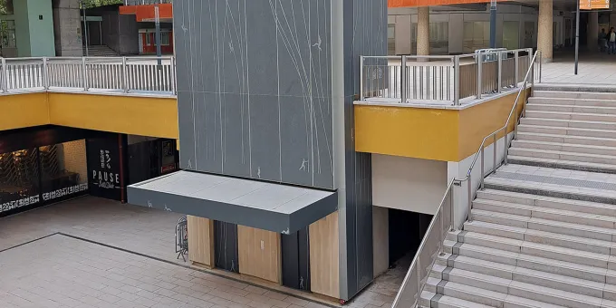 Situé dans le quartier Reflets, l’œuvre Apseil habille l’édicule du parking Q-Park. La pierre grise, devenue la toile de Vincent Broquaire, amène un supplément d’âme au quartier récemment réhabilité.