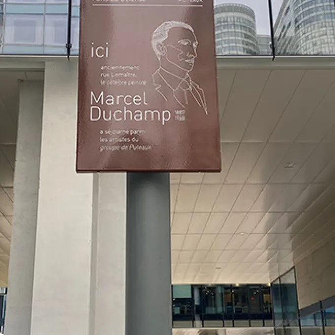 Le mercredi 29 octobre 2025, une plaque commémorative en l’honneur de l’artiste peintre Marcel Duchamp a été inaugurée sur la place de la Pyramide, à l’endroit même où un collectif d’artistes appelé « Groupe de Puteaux » se réunissait il y a plus d’un siècle.
