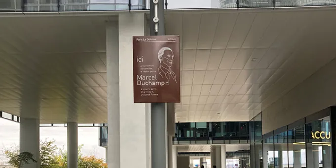 L’art règne en maître à Paris La Défense. Si tous les styles, tous les courants, toutes les couleurs et tous les artistes sont mis en valeur dans ce musée à ciel ouvert, cette fois-ci, c’est Marcel Duchamp qui vient d’être mis à l’honneur. Le mercredi 29 octobre 2025 est une date clé pour la Ville de Puteaux, et plus particulièrement pour le quartier Villon qui vient d’accueillir une plaque commémorative en hommage à celui que beaucoup considèrent comme étant le père de l’art contemporain. Cette plaque orne désormais la place de la Pyramide, à l’emplacement même où se réunissait autrefois le célèbre « Groupe de Puteaux ».