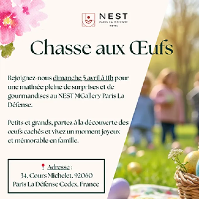 Le Nest Hôtel a rouvert ses portes au début du mois de mars après des travaux de rénovation. Il vous invite dorénavant à célébrer Pâques à ses côtés ! Le dimanche 5 avril 2026, à partir de 11h, une chasse aux œufs va être organisée ! Une activité qui conviendra autant aux petits qu’aux grands !