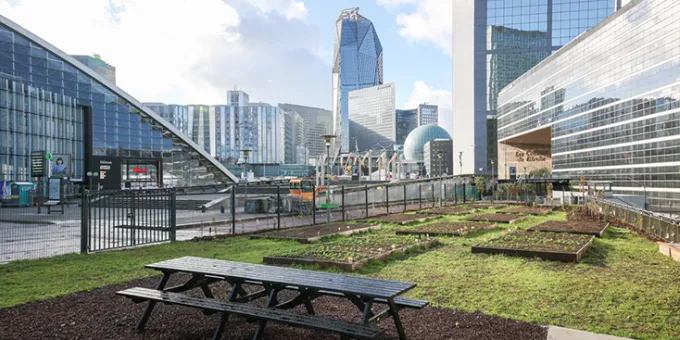 Avec une superbe vue sur La Grande Arche, le Jardin des Collines ouvre son portail aux étudiants du Pôle Léonard de Vinci, et plus précisément aux élèves adhérant à l’association deVinci Durable.