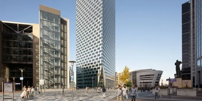 La rénovation de la tour Adria et son rehaussement de 3 étages sont le signe d’une réinvention pour le quartier d’affaires. Au cœur du projet Hopen se trouve la volonté de s'ouvrir, d'offrir un nouveau type d'immeuble de bureaux non seulement à ses utilisateurs mais aussi aux habitants.