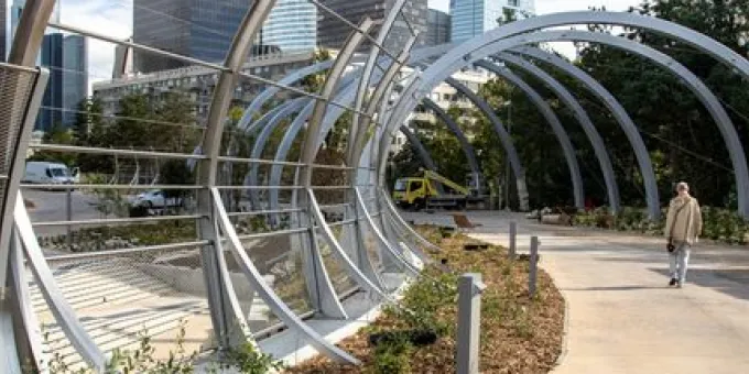 - Une transformation de l’échangeur routier du boulevard circulaire en promenade suspendue qui s’inspire de la High Line new-yorkaise. Ce nouvel espace végétalisé de 500 mètres, est ouvert à la déambulation comme aux activités sportives,