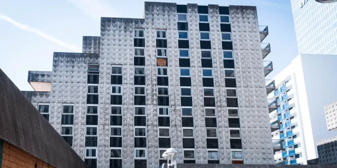 L'immeuble Damiers d'Anjou comprend 110 logements répartis sur 12 étages.