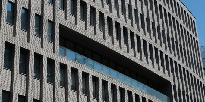 Le rythme des façades et des étages est marqué par des modules en brique et en verre, où une trame régulière et rigoureuse s’alterne avec des grands éléments de dialogue urbain. L’alternance brique-verre produit un bâtiment à la fois massif et transparent. Une attention particulière a été portée aux circulations, qui importent autant que les espaces qu’elles desservent. Traversant et irriguant l’école, le parcours dévoile la diversité des espaces en matière de hauteur, de forme et d’affectations, mais aussi la façon dont ils se connectent, devenant alors un parcours progressif, révélant et stimulant la vie de l’école.