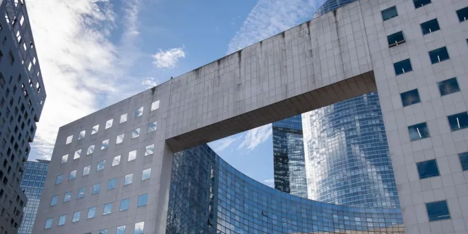 Formant une suite d’espaces fermés, les édifices abritent une place ronde couverte, une autre semi-circulaire – à tendance minérale- et une place ovale végétalisée. Un parfait alliage, selon les architectes, entre « le gigantisme de La Défense et le respect de ceux qui y vivent et y travaillent. »